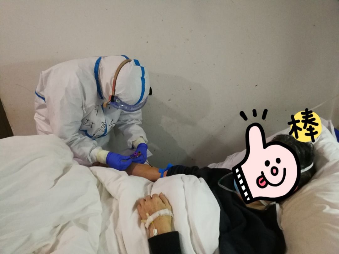 06:00,开始早晨的抽血,带了三层手套,护目镜这时突然很给力,雾气已经逐渐散掉,可以一针见血,一次成功,高度紧张的患者也直夸我技术高超,我内心也是乐开了花。接着做早上的治疗,测指脉血氧、血压、血糖、体温并一一登录到电脑系统。突然,监护仪器发出“嘀嘀嘀”的报警声,原来是重病房的一位患者血氧下降到70,医生和我们立即投入抢救,有条不絮、临危不乱,看到患者血氧逐渐上升,85、90、95,我们才算松了一口气。