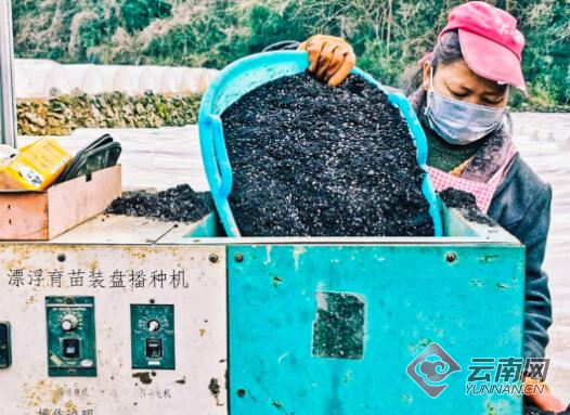 西洒镇新寨育苗点育苗工人正在进行机械育苗
