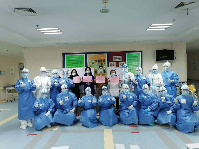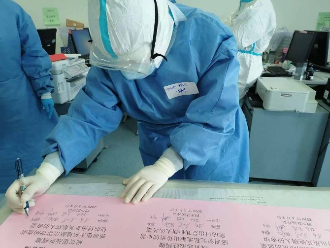 3月3日上午,在四川省第七、八批援鄂医疗队接管的武汉协和医院肿瘤中心Z9病区,四川医疗队为当天出院的4名新冠肺炎康复患者送上了一份特制的奖状。用红纸打印的奖状上,四川医疗队值班队员逐一签上了自己的名字,向这4名志愿捐献血浆的康复者致敬,感谢她们在战胜病魔后以实际行动去帮助他人。