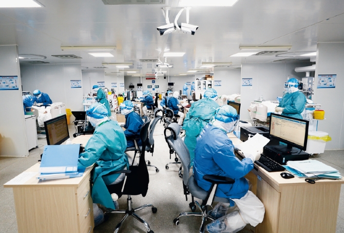 2020年2月24日,火神山医院重症医学一科工作场景。 人民图片 王皓宇/摄