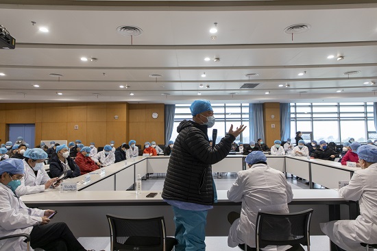 2月28日,早上大换班各病区负责人对当日情况进行讨论。
