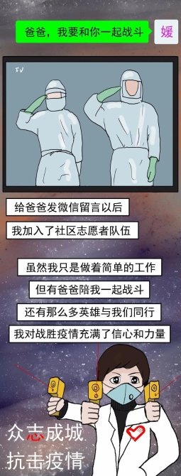 留守的媛媛在保护好自己的同时,也在为战胜疫情贡献着自己的力量。一起战斗,是媛媛和爸爸的约定。