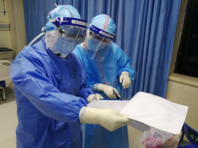 但王峰走进病房后却发现患者们都很乐观,没有人说过一句抱怨的话。查房时,轻症患者会送王峰走出病房,还试着用普通话说,“大夫辛苦了。”重症患者带着呼吸机、面罩,说不了话,仍然会努力竖起大拇指,以示感谢。“前两天,有位50多岁的患者把我叫到病床边,给我拍了张照片。他解释说,因为看不清我的样子,所以想将我防护服上写着的名字拍下来,留个念想。”