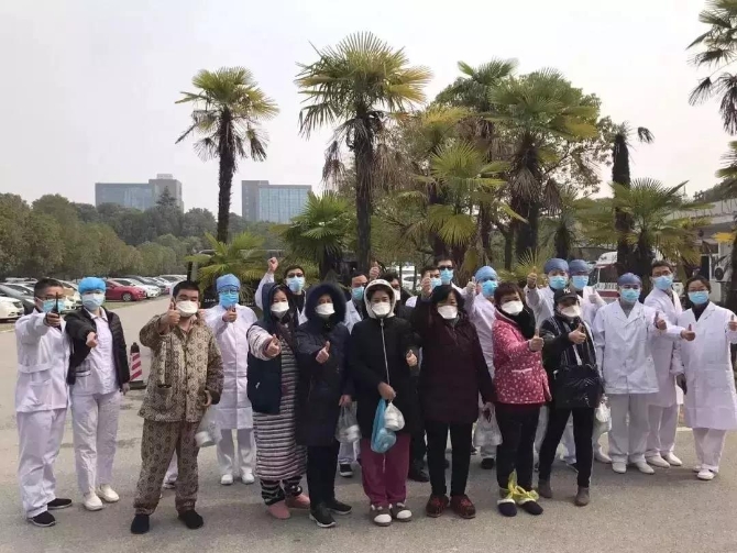△资料图:2月6日湖北省中西医结合医院18位新冠肺炎患者康复出院