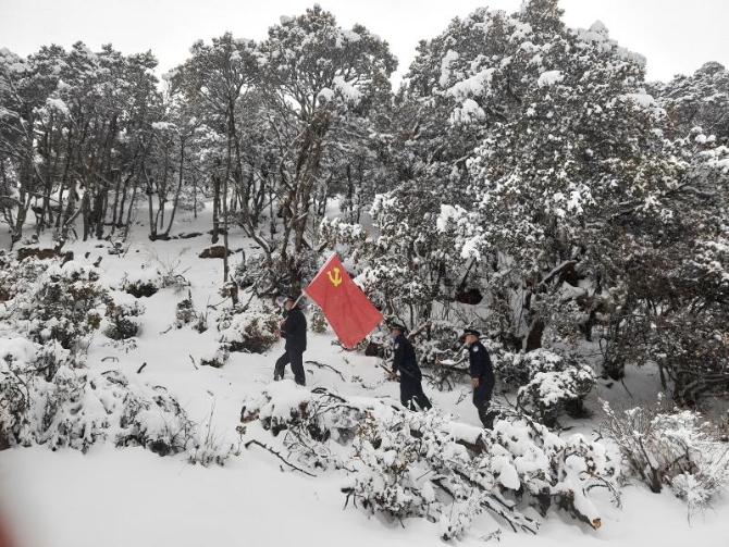 在巡山管护中,民警们顶着风雪,踏着及膝的积雪,搜查可疑轨迹和捕猎工具,排查可疑车辆和重点房屋,对进入林区的嫌疑人员、车辆严加排查。同时用藏语对辖区群众进行宣传和引导,有效提高了林区群众野生动物保护意识。截至目前,格咱森林派出所出动警力120人次,巡查野生动物栖息地、迁徙通道20处,检查野生动物驯养繁殖场所5家,检查餐饮场所6家。