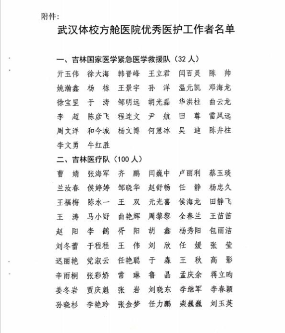 附:武汉体校方舱医院优秀医护工作者名单
