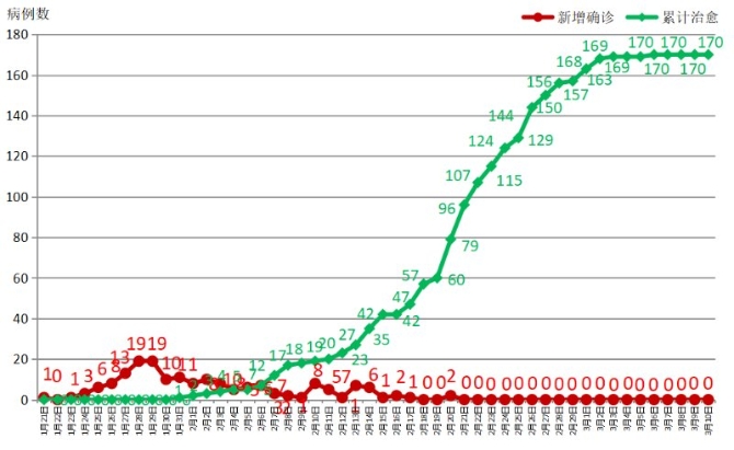 昆明信息港讯 机器人小明 3月10日12时至24时,无新增确诊病例。截至3月10日24时,已连续19天新增病例为0,全省累计确诊病例174例,治愈出院170例,死亡2例,现有确诊病例2例,无重症、危重症病例。