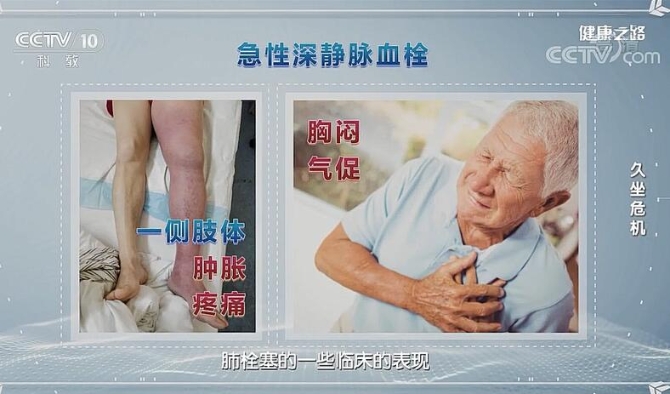 急性的下肢深静脉血栓:一侧肢体突发肿胀、疼痛,同时可能伴随有胸闷、气促等肺栓塞的临床表现。