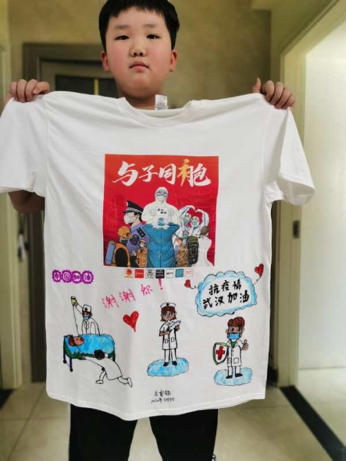 “医护人员拿到文化衫后,都非常高兴,她们说小朋友画得太好看了。”徐敬阳说。