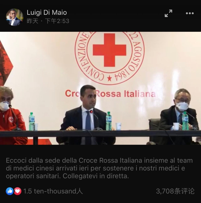 当地时间13日中午,与意大利外长迪马约和意大利红十字会主席罗卡共同出席新闻发布会时,中国专家组堪称全场焦点,甚至在社交媒体上掀起一股“感恩”热潮。