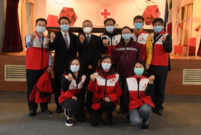 3月13日,在意大利红十字会总部,中国驻意大使李军华与中国医疗专家组合影。新华社发