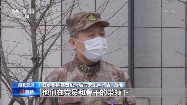 驻鄂部队抗击疫情运力支援队政委 黄维:40多天以来,他们在党员和骨干的带领下,冲在前、干在前,在运输线上迅速成长,他们在任务中深刻理解了新一代青年军人的使命担当,在他们身上,我们感受到了强军事业的新生力量和新的希望。