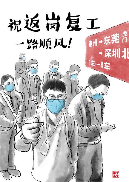 登上返岗专列,回到亲切熟悉的工作岗位,趁着春光,只争朝夕干起来!(文:董璐 手绘:赵凯)