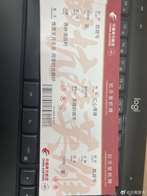 除此之外,这次还专门制作了纪念版登机牌给医疗队员们。和之前刷屏的“湖北版”特制登机牌不同的是,这次东航的特制登机牌上写有给医疗队员们的一封信:“阳光洒满心田,杏花翩飞林间……今日如愿,与有荣焉,让我们即刻启程!一起回家!”(张成)