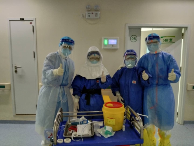 我永远忘不了,第一次进隔离病房时的忐忑和同事之间的鼓励;也永远也忘不了,我冲进办公室告诉大家“第一例病人脱机拔管”的消息时,每个小组成员那惊喜的眼神;更忘不了,我们和广东省医疗队一起合影,他们竖起大拇指跟我们说“勇敢的姑娘”。我很庆幸自己没有错过。