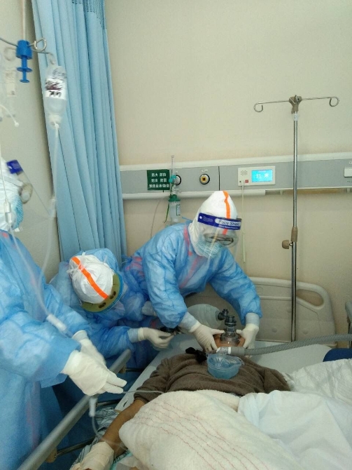 我想说的第二句话是“对不起”。我事先没有跟你们解释我们此行的任务,因为我不想让你们担心,你们最后还是从新闻中了解了我们工作的性质。我们是负责气管插管操作的,我们将气管导管从病人口腔插入气道,对有呼吸困难的新型冠状肺炎病人进行呼吸支持治疗。操作时含有大量病毒的气溶胶有可能喷出来,让我们面临很大感染风险,气管插管也是抢救过程中最危险的操作之一。