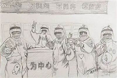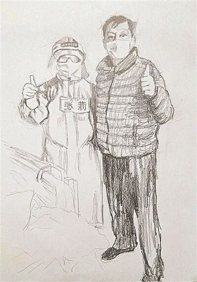 打开微信,出现在张莉眼前的是一个电子相册,以及13张铅笔素描画。灵巧的构图,精细的笔触,生动再现了医护人员的工作场景。