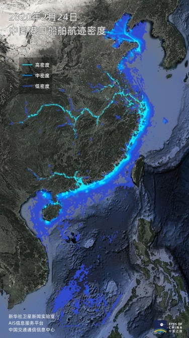 根据通信卫星等方式获得的船舶信息, 中国沿海及内河的船舶活跃度正在快速提升。