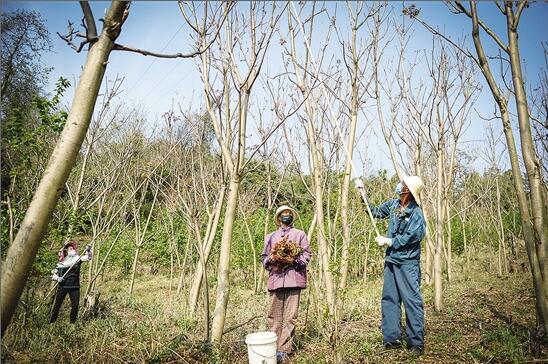 胡明花告诉记者,香椿一般从每年2月底开始发芽,一直持续到4月中下旬,每年的采摘季可持续1个半月至2个月。在这段时间里,一棵树可以采摘三茬。在市场好的时候,每公斤香椿的收购价可达到60元。“今年最贵的时候只卖到40元,这几天还不到10元。”胡明花说,因受到疫情影响,今年来村里收香椿的人也比往年少,看着椿树一天天在发,就怕老在树上都卖不掉。