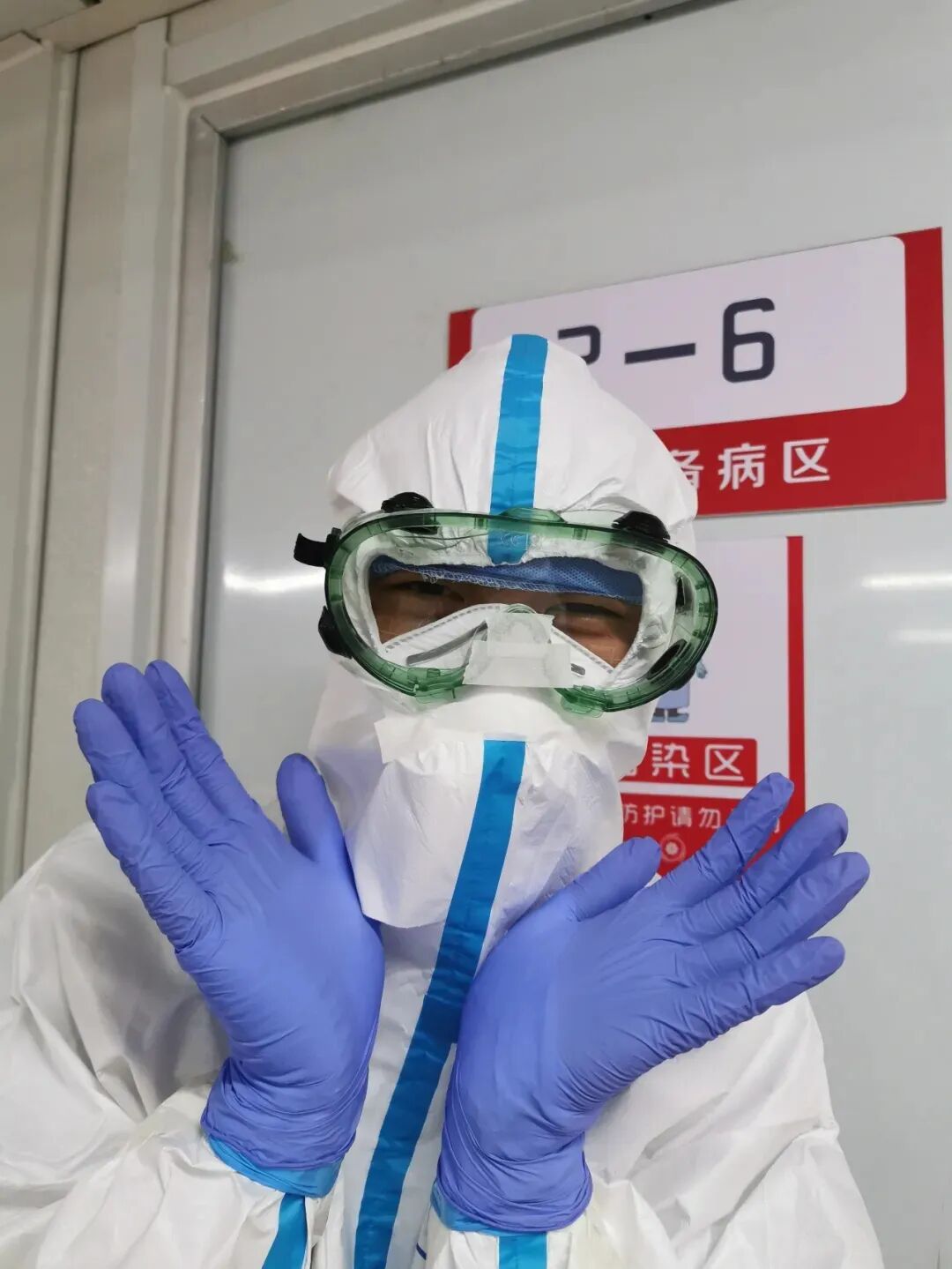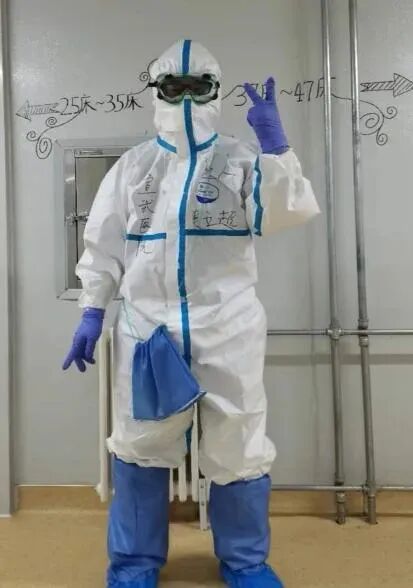 这天下午,病区田巍主任和赵建功主任要求大家一定要做好防护,尤其是穿脱隔离服,大家迅速操练起来。我是来自北京佑安医院的一名医生,先期进入过新冠抗疫一线,我首先给大家演示如何穿脱防护服,能为大家的安全作出一点贡献,我心里无比高兴!