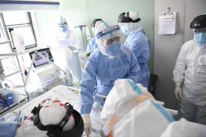 张抒扬:其实说“接管”ICU(重症病房)不是十分准确,我们是建立一个新的ICU病房。我们做到了几个不可能,在48小时内,把病房改造完毕,这得到同济医院的大力支持,按照重症医学科和感染科这样一个相结合的病房要求来设置。32张病床,头一天一下子就来了18个病人,一个比一个重。病人一来真正感觉到这是一场战役。我们的工作是对极危重患者的救治。病人其实就是在走钢丝绳,你不全力地去拉他,他就走了,所以要拼尽全力。无论是医护,都是把过去多少年来的积累、对疾病的认识,以及全部的爱都拿出来,拼命地去挽救患者生命,医生护士不放弃。
