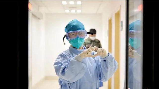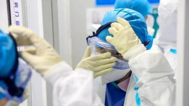 图为医护人员对着镜子整理护目镜。中新社 记者张畅/摄