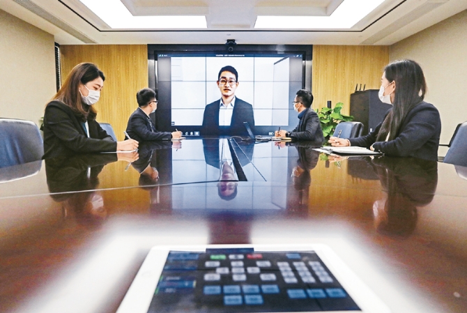 随着疫情防控和复工复产有序推进,要优化招用工举措,着力推进线上就业服务和技能培训,推动市场供求匹配,保障企业用工和劳动力就业应聘双向需求。图为2020年3月3日,在浙江省宁波市江北区的一家公司,一场线上“云面试”正在进行,负责招聘面试的工作人员通过远程视频连线,和在家里的求职者进行线上对话。 人民图片 章勇涛/摄