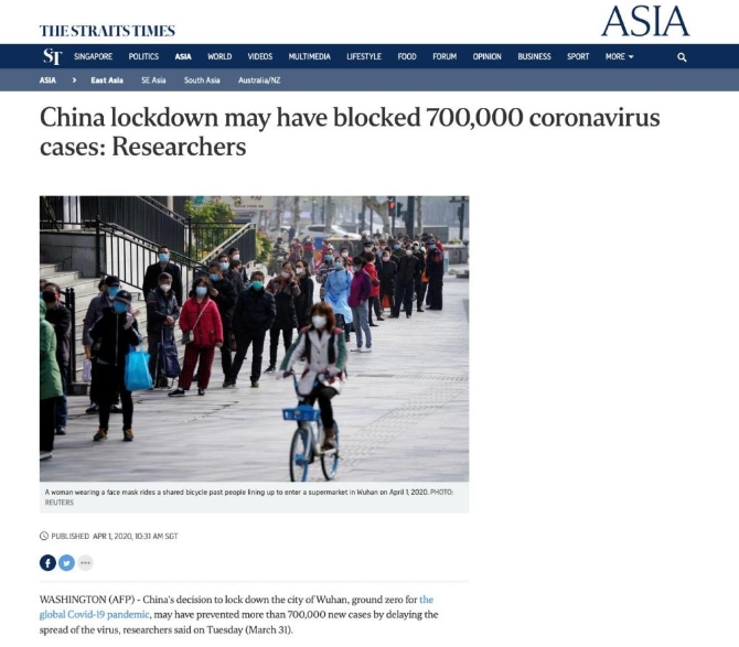 据法新社报道,由中国、美国和英国的研究人员3月31日发表在美国权威学术刊物《科学》杂志上的一篇论文称,中国在新冠肺炎疫情暴发初期针对武汉采取的严厉控制措施,为全国其他城市准备并实施各自的限制措施赢得了宝贵的时间,中国政府“封锁”武汉的决定延迟了病毒的传播并可能由此防止了70万例新冠肺炎确诊病例的出现。