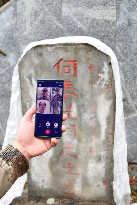 ▲30多年的漫长等待之后,亲人第一次来梁瑞聪烈士墓前祭奠扫墓。梁英海 摄