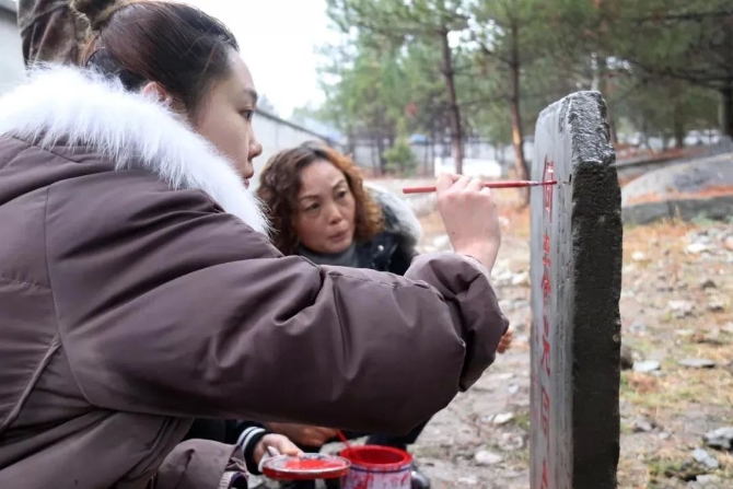 △2019年清明节前夕,何语嫣在西藏波密县烈士陵园描红墓碑。(资料图)