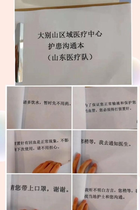 每当语言不通时,张静静和同事便拿出自制的《护患沟通本》,请患者通过文字理解
