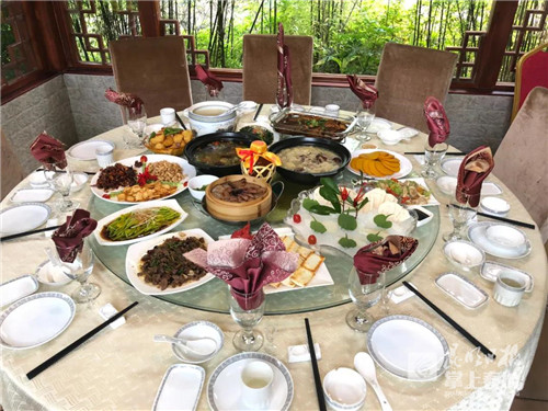 景区内的石泉村木屋酒店和紫竹苑休闲养生酒店客房设施齐备,既蕴含着浓郁的地方风情,又充分与中国山水环境结合;樱花峪药膳坊以特色养生药膳为主,结合杏林大观园自产的纯天然无污染有机食材,制作出具有养生、保健的药膳品种。坐在古色古香的药膳坊里,游客所到之处一目一食,无不浸染着浓郁的杏林文化。