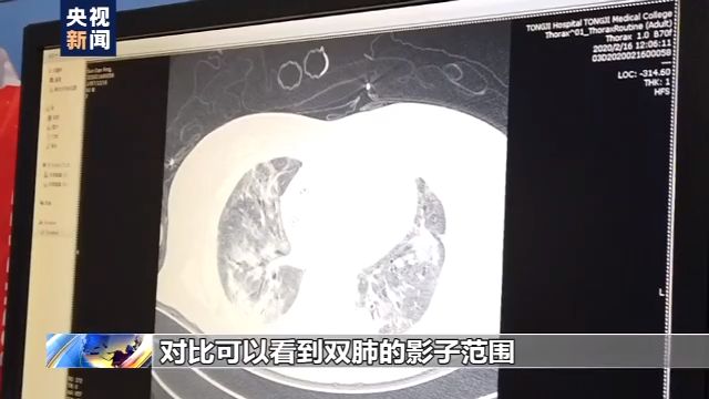 中日友好医院援助湖北医疗队 医生: 对比可以看到双肺的影子范围会更广一些,包括炎症反应程度比之前会更重一些。