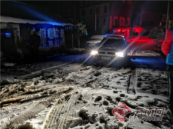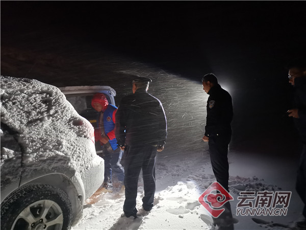 “喂,大海派出所吗?我白天来大海草山玩,现在下大雪被困在里面了,请你们来救我!”21点50分,大海乡派出所接到游客朱某的报警电话。警情就是命令,大海派出所所长尚加英立即带领民警不顾漫天飞雪赶往事发地点救援。由于被困游客所处区域海拔3500米,夜间气温接近零下5度,并伴随着暴风雪,游客的生命安全受到威胁。随着海拔越来越高,风雪越来越大,天黑路滑,积雪厚重,给救援工作带来了极大的困难,派出所的救援警车刚出门500米就被困在路上无法前行。面对群众安危,为及时赶往救援,大海派出所民警立即与大海乡政府取得联系,并调来了四驱车火速赶往现场。经过1个多小时的缓慢行驶,23时许,终于在草山宾馆附近找到了被困游客,当时游客的脸被冻得通红,浑身哆嗦,话都说不出。民警立即为朱某送上随车带来的热水,并将朱某带上车返回。23时30分,大海派出所民警将朱某带到了乡镇所在地,为朱某找到了旅店住宿。