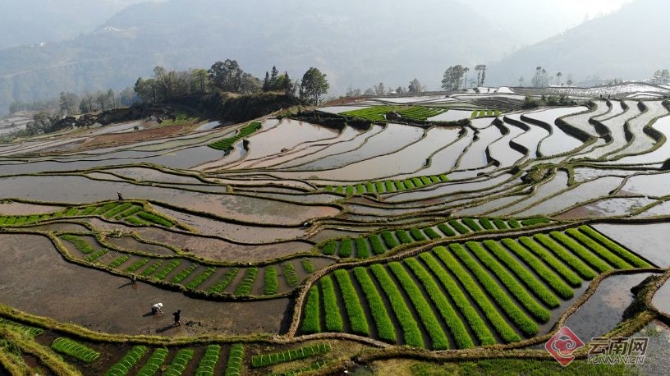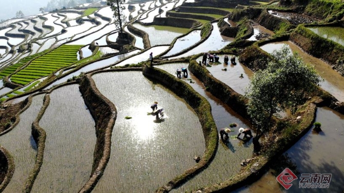 眼下,正是水稻插秧的最佳时节,在红河哈尼族彝族自治州元阳县牛角寨镇新安所村的梯田里,当地村民抓住春耕时节忙着犁田、插秧,田野上一派忙碌的景象。当地农业部门加强疫情防控期间对农业生产的指导,积极采取多种措施及早谋划春耕备耕工作,确保在疫情严峻的形势下,农业生产扎实推进。