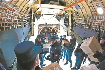 △当地时间4月17日上午,一架白俄罗斯伊尔-76军用运输机降落在首都明斯克郊区的军用机场,从中国运回新一批中方援助的抗疫物资。当天运抵的这批物资总体积约为180立方米,重约30吨。图为白紧急情况部官兵从运输机上卸载中国援助的抗疫物资。新华社发