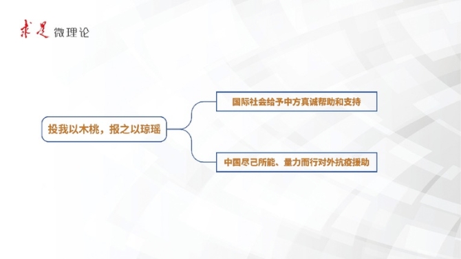 第三专题共17条,着重强调:患难见真情,中方赞赏国际社会给予我们的宝贵理解和支持,中国人民铭记在心,中华民族是懂得感恩、投桃报李的民族,中方始终在力所能及范围内为国际社会抗击疫情提供支持;