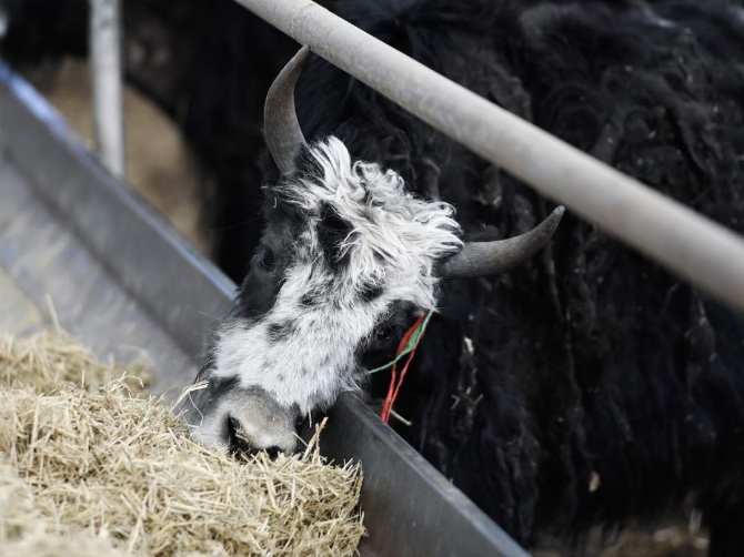 青海省贫困人口点多面广、贫困程度深,共有贫困县(市、区、行委)42个,其中国家扶贫开发重点县15个。脱贫攻坚战打响以来,青海省按照“四年集中攻坚,一年巩固提升”的总体部署,紧紧围绕“两不愁三保障”目标标准,以青海省“1+8+10”政策体系为牵引,坚决有力推进精准扶贫、精准脱贫,减贫成效逐年显现。图为在青海省海北藏族自治州刚察县沙柳河镇青青草牛羊养殖专业合作社拍摄的牦牛。