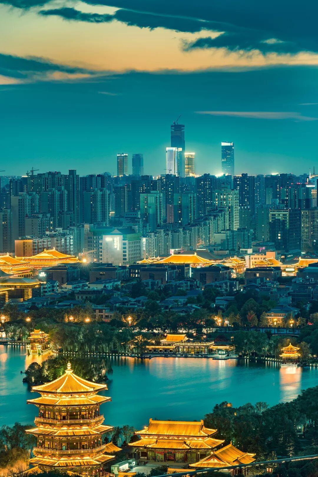 (从大唐芙蓉园远眺高新区CBD,摄影师@肖晖)