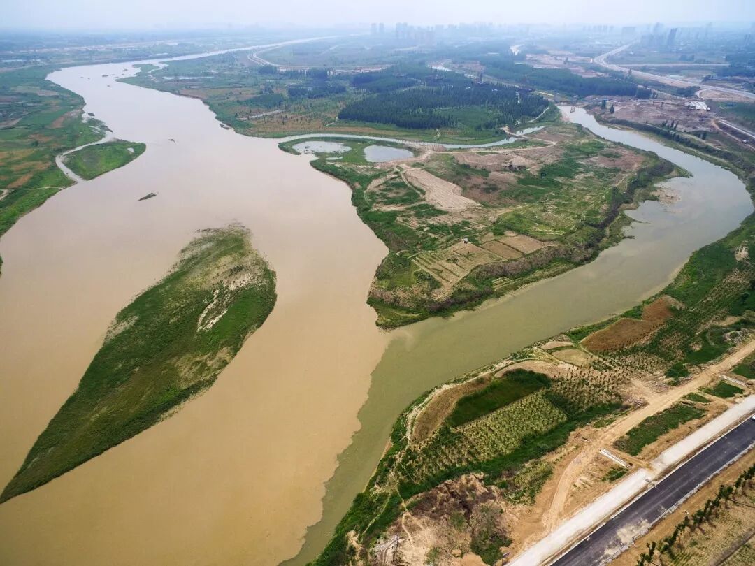 (渭河与泾河交汇的泾渭分明处,渭河浊而泾河清,摄影师@陈团结)