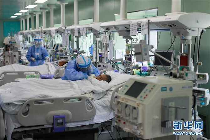 4月24日,在位于武汉的华中科技大学同济医学院附属协和医院西院,医务人员在护理核酸检测结果转阴的新冠肺炎病人。当日,湖北省及武汉市所有新冠肺炎重症病例实现清零。 新华社记者 沈伯韩 摄