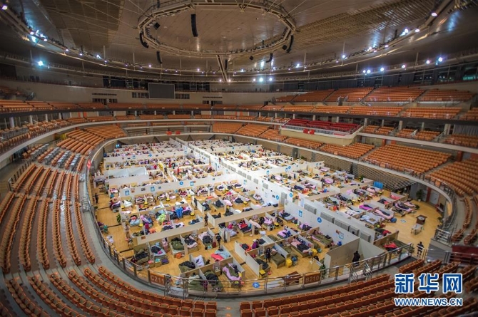 2月17日拍摄的武汉体育中心方舱医院。 新华社记者 肖艺九 摄