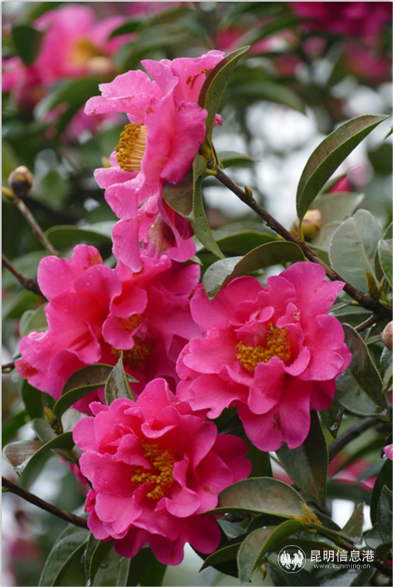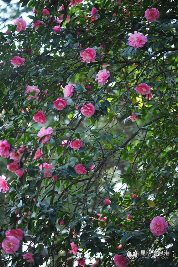 来到昆明植物园,一定要去观赏由本园培育或命名的50多个新品种。比如早茶花‘红霞迎春’、‘幼堂春秀’等品种。云南山茶品种‘早桃红’、‘雪娇’、‘红霞迎春’、‘金蕊芙蓉’,山茶品种‘岩根绞’、‘十八学士’,杂交种‘情人节’、‘迷茫的春天’等也非常值得观赏。在该园还可以欣赏到有植物界大熊猫之称的金花茶,珍稀原生种崇左金花茶、杜鹃红山茶及山茶科中极其珍贵的单种属猪血木等珍稀植物。800多株树龄70年的云南山茶大树更是蔚为壮观。