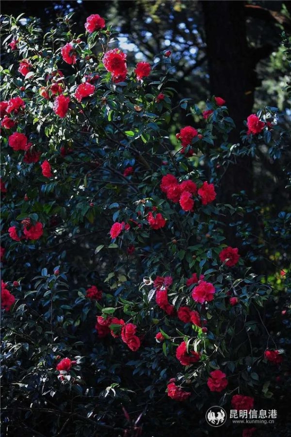 作为国家4A级景区、全国重点文物保护单位,昆明市金殿名胜区素以茶花闻名。这里的茶花专类园占地1200余亩,栽培茶花40余万株、1200多个品种,是全国面积最大、栽培云南山茶品种、数量最多的茶花专类园区。