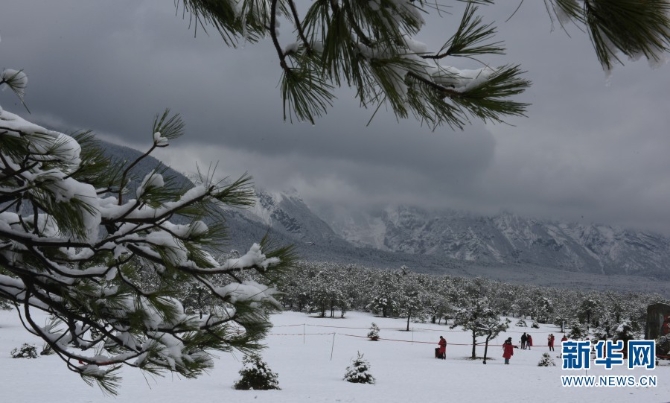 玉龙雪山四月飞雪 银装素裹宛如童话世界