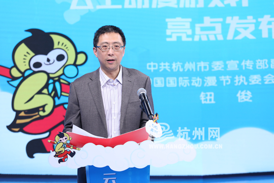 中共杭州市委宣传部副部长、市文明办主任、中国国际动漫节执委会秘书长钮俊代表中国国际动漫节执委会办公室发布了本次“云上动漫游戏产业交易会”的精彩亮点,并邀约海内外动漫游戏企业、业界人士和动漫爱好者于金秋时节齐聚杭州参加第十六届中国国际动漫节,共享动漫文化盛宴,共创动漫美好未来。