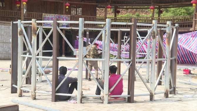 在广南县牡露侬人谷景区的活动广场上,工人师傅正在忙着焊接拼装一口大锅。据焊接工人师傅介绍,该锅是在上海用熟铁制作而成,原本是一口完整的锅,但是考虑到从上海运到广南来不方便,就将它分开成三部分才运到牡露侬人谷,在重新从四川聘请焊接技术较好的师傅来将大锅焊接拼装起来。