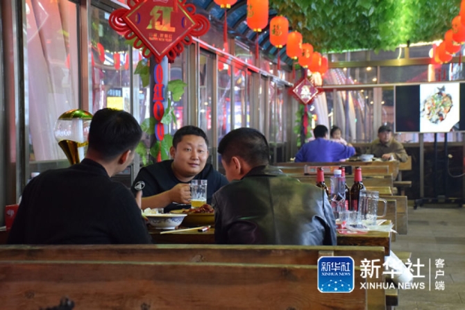 ↑5月4日,顾客在天津市南开区奥城商业广场一家陕西风味餐厅里享用美食。 新华社记者 白佳丽 摄