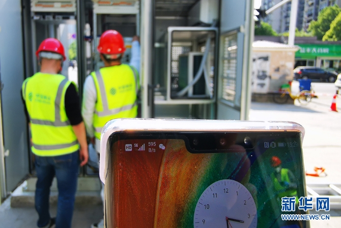 湖北移动公司加紧5G网络建设。新华网发 王政摄