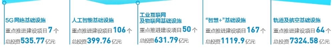——统筹部署“智慧+”基础设施。积极推动交通、能源、园区、电网改造、新能源充电桩、公共服务管理、城市治理等领域重大基础设施智慧化改造工程。重点推进建设项目167个,项目总投资1119.9亿元,2020年计划完成投资177.85亿元。
